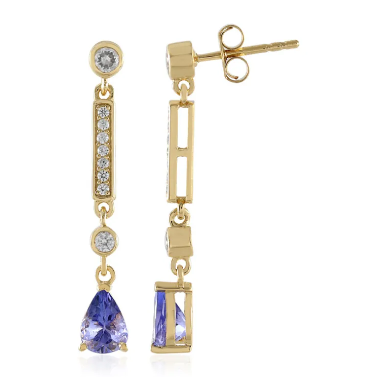 Tansanit-Tränen-Ohrringe aus vergoldetem Silber, 1,14ct