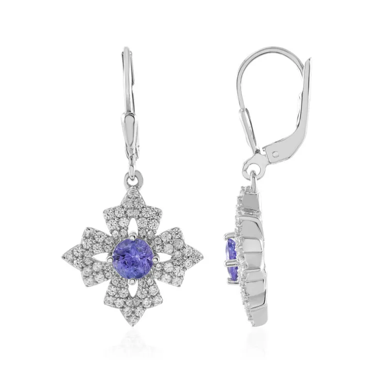 Schmücken Sie Ihre Ohren mit einem Hauch von himmlischer Inspiration. Diese Starburst-Ohrringe sind mit leuchtenden Tansaniten aus Tansania mit einem Gesamtgewicht von ca. 0,98 ct. besetzt, die von einem Halo aus funkelnden Zirkonen aus Kambodscha umgeben sind und zusammen ein Edelsteingewicht von 2,31 ct. ergeben. Diese 33 mm großen Ohrringe aus platiniertem 925er Sterling Silber vereinen modernes Design und klassische Eleganz. Diese exquisiten Ohrringe sind ideal, um Ihrer Geschäftskleidung Raffinesse zu verleihen oder Ihrer Abendgarderobe einen Hauch von Glanz zu verleihen.