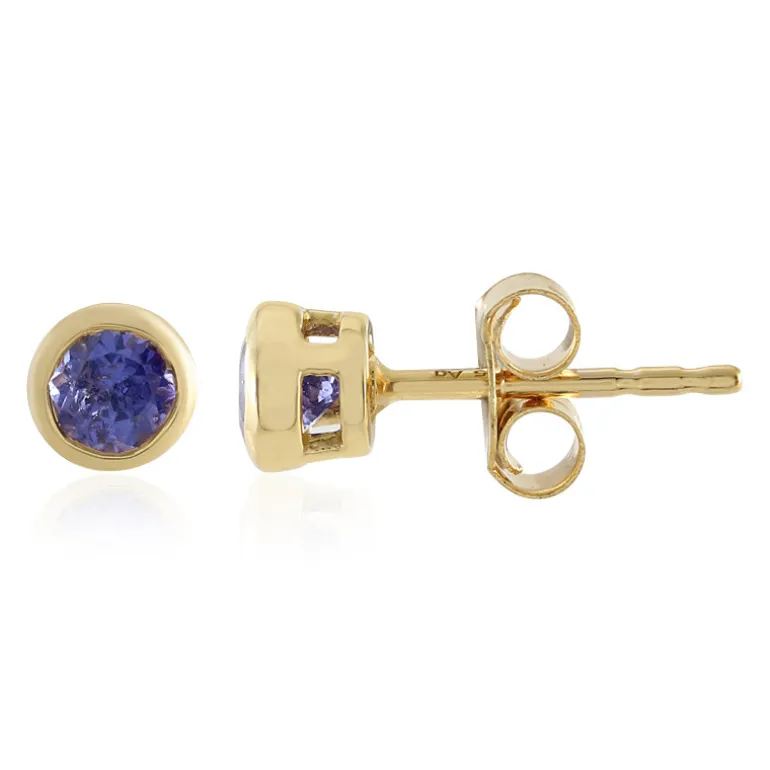 Entdecken Sie die Faszination des Tansanits mit diesen schicken Ohrringen, die 0,534 Karat eines bezaubernden Tansanits enthalten, der direkt aus Tansania stammt. Jeder Edelstein wurde präzise rund geschliffen, um den klassischen violett-blauen Farbton zu betonen, und ist in glänzendem 925er Sterlingsilber mit einer satten Goldplattierung gefasst, das etwa 0,84 Gramm wiegt. Diese Ohrringe sind perfekt, um sowohl am Tag als auch am Abend einen Hauch von Eleganz und feiner Handwerkskunst zu zeigen.