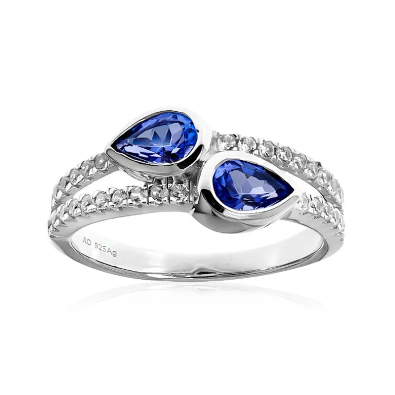 Entdecken Sie die zeitlose Eleganz dieses Rings aus 925er Sterlingsilber mit zwei bezaubernden Tansaniten aus Tansania mit einem Gesamtgewicht von 0,63 Karat. Diese Edelsteine im Tropfenschliff bestechen durch ihren tiefblauen Farbton. Umgeben von einem Halo aus 32 funkelnden Zirkonsteinen aus Kambodscha, die zusammen 0,432 ct an Brillanz verleihen. Mit seinen Maßen von 21×20 mm strahlt dieser Ring Raffinesse aus, was ihn zu einem exquisiten Accessoire für Abendveranstaltungen oder besondere Anlässe macht. Kombinieren Sie ihn mit Ihrem Lieblingsabendkleid und setzen Sie ein Zeichen für raffinierten Geschmack.