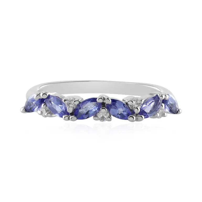 Dieser bezaubernde Ring besteht aus einem Quintett von Tansaniten im Marquiseschliff aus Tansania mit einem Gesamtgewicht von 0,504 Karat, eingefasst in ein elegantes 925er Sterlingsilberband. Das leuchtende Blau des Tansanits wird durch kambodschanische Zirkon-Akzente wunderbar ergänzt, die dem Design ein subtiles Funkeln verleihen. Mit einem Gewicht von ca. 1,35 Gramm verbindet dieser Ring Eleganz mit Komfort und ist damit eine vielseitige Ergänzung für jede Schmucksammlung. Er eignet sich perfekt für besondere Anlässe oder für das tägliche Tragen und verleiht einer klassischen weißen Bluse oder einem Abendkleid einen Hauch von Farbe.