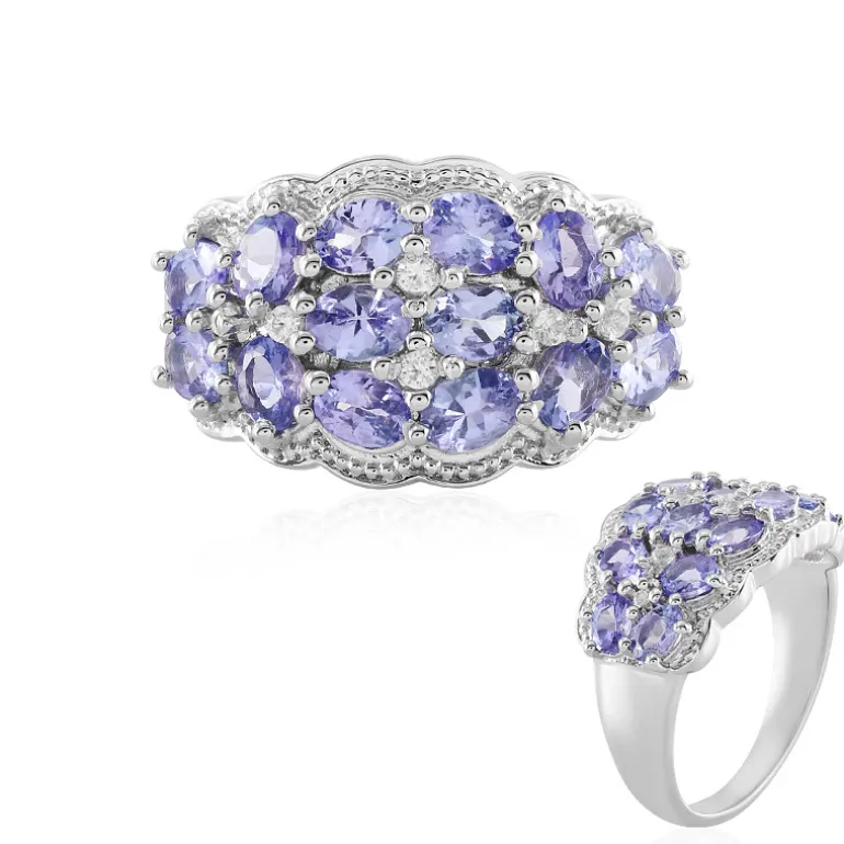 Entdecken Sie den Vintage-Charme dieses exquisiten tansanischen Tansanitrings mit 14 Edelsteinen im Ovalschliff von insgesamt 2,285 Karat, die von zarten Zirkon-Akzenten umrahmt werden. Der Ring ist aus hochwertigem 925er Sterlingsilber mit Platinbeschichtung gefertigt und wiegt etwa 4,41 Gramm. Dieser Ring ist perfekt, um Ihrer Abendgarderobe einen Hauch von Raffinesse zu verleihen. Er glänzt mit historischem Charme und moderner Handwerkskunst.