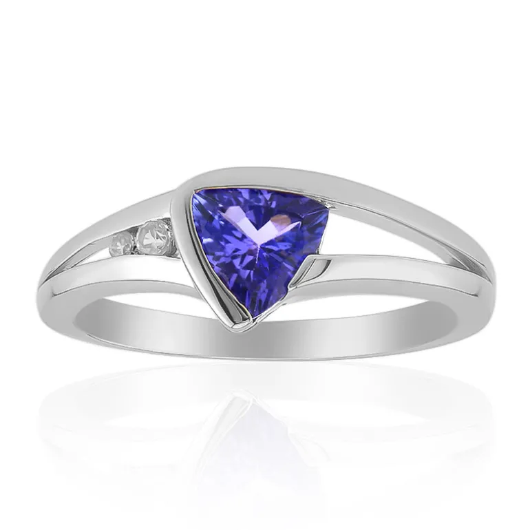 Entdecken Sie die verführerische Schönheit dieses bezaubernden Tansanit-Rings im Trillant-Schliff aus Tansania. Der zentrale Tansanit mit einem Gewicht von 0,713 ct und einem lebhaften blauen Farbton, der die Essenz der Eleganz einfängt, ist in glänzendem platiniertem 925er Sterlingsilber gefasst. Ergänzt durch das Funkeln kambodschanischer Zirkon-Akzente von insgesamt 0,036 ct und 0,019 ct, präsentiert dieser Ring eine moderne Wendung eines klassischen Designs. Die schlanken Konturen und die raffinierte Anziehungskraft machen ihn zu einer vielseitigen Ergänzung Ihrer Kollektion, die sowohl im Alltag als auch in der Abendgarderobe einen farblichen Akzent setzt.