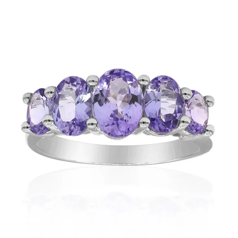 Entdecken Sie die Faszination des tansanischen Tansanits mit diesem Ring aus Sterlingsilber, der ein Quintett von Edelsteinen im Ovalschliff von insgesamt 2,786 Karat enthält. Jeder Stein strahlt in einem bezaubernden Violett, das in einer klassischen Fassung aus 925er Sterlingsilber perfekt zur Geltung kommt. Dieser Ring ist eine vielseitige Ergänzung für jede Schmucksammlung und lässt sich problemlos von der Tagesgarderobe bis zur Abendgarderobe tragen. Er eignet sich sowohl für zwanglose Ausflüge als auch für besondere Anlässe und verleiht jedem Outfit einen Hauch von Eleganz.