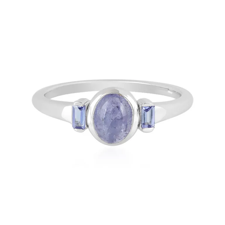 Entdecken Sie die Faszination Tansanias mit diesem exquisiten Tansanit-Ring aus Sterlingsilber. Mit einem ovalen Cabochon in der Mitte und zwei Tansaniten im Baguetteschliff eignet sich dieses Schmuckstück sowohl für legere als auch für besondere Anlässe. Kombinieren Sie ihn mit einem raffinierten Abendkleid oder werten Sie einen einfachen Tageslook auf. Sein einzigartiger blauer Farbton macht ihn zu einer herausragenden Ergänzung jeder Schmucksammlung.