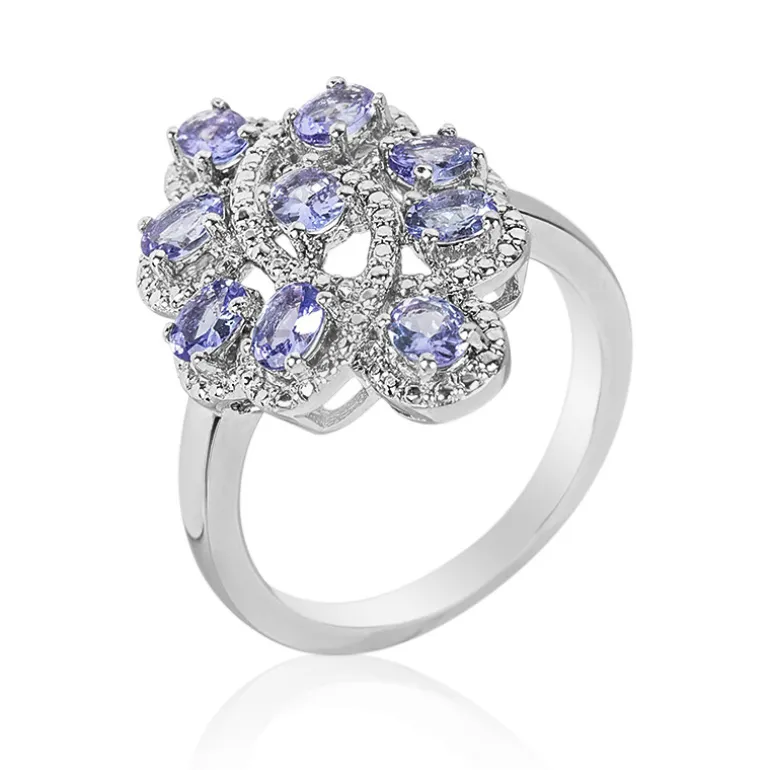 Lassen Sie sich von der Anziehungskraft des tansanischen Tansanits mit diesem raffinierten Silberring verzaubern. Jeder der neun oval geschliffenen Edelsteine schimmert in einem satten Violettblau, das durch den Glanz des 925er Sterlingsilbers kontrastiert wird. Das Gesamtkaratgewicht von 1,249 ct und die sorgfältige Verarbeitung machen diesen Ring zu einem Schatz für jede Sammlung. Er ist ideal für formelle Anlässe und besondere Gelegenheiten und verleiht jedem Ensemble einen Hauch von Eleganz und Raffinesse.
