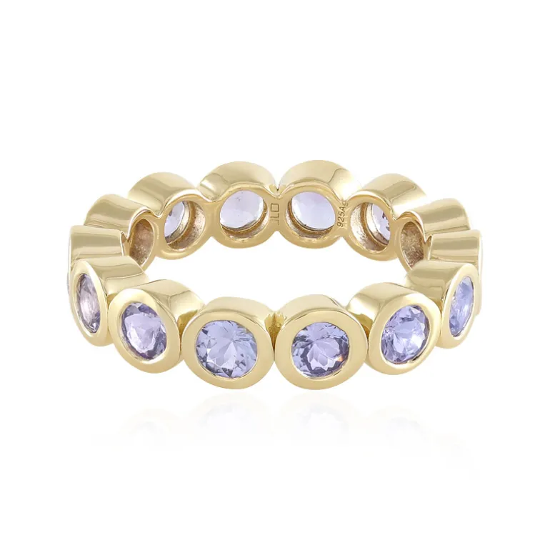 Entdecken Sie die Faszination dieses luxuriösen Rings mit einer Reihe von glitzernden Tansaniten, die in poliertes Sterlingsilber gefasst sind. Das Design des Rings mit einem 26-mm-Profil, das zeitgenössische Eleganz ausstrahlt, ist für die Liebhaberin modernen Schmucks gemacht. Die violetten Farbtöne der einzelnen Edelsteine harmonieren wunderbar mit dem glänzenden Silber und machen diesen Ring zu einem vielseitigen Accessoire für Tag und Nacht. Schmücken Sie Ihre Hand mit diesem Stück für einen Hauch von Raffinesse bei jeder Veranstaltung.