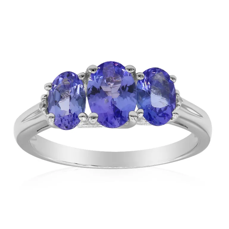 Dieser exquisite Ring aus 925er Sterlingsilber zeigt die ruhige Schönheit tansanischer Tansanite. Dieses Schmuckstück präsentiert drei Tansanite im Ovalschliff mit insgesamt 1,69 Karat, die von zwei zarten SI2 (H) Diamanten ergänzt werden, die ein subtiles Funkeln hinzufügen. Die leuchtenden Blautöne der Edelsteine sind ein faszinierendes Herzstück, das Raffinesse ausstrahlt. Dieser Ring ist eine unwiderstehliche Ergänzung für jede Schmucksammlung und eignet sich perfekt für die Eleganz des Alltags oder als auffälliges Accessoire für besondere Anlässe.