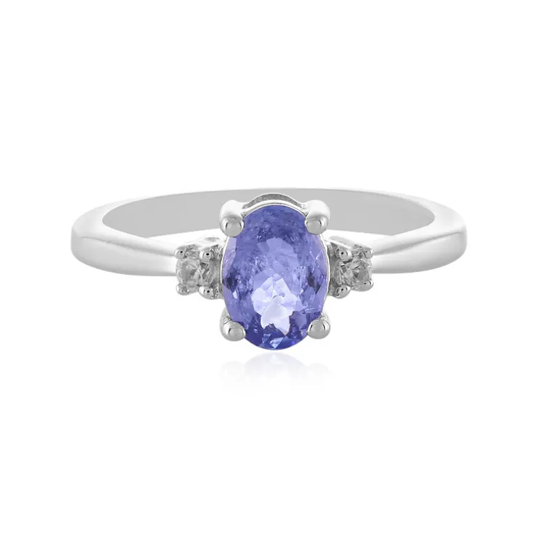 Ovaler Tansanit & Akzent Zirkon Silber Ring, 0,816ct