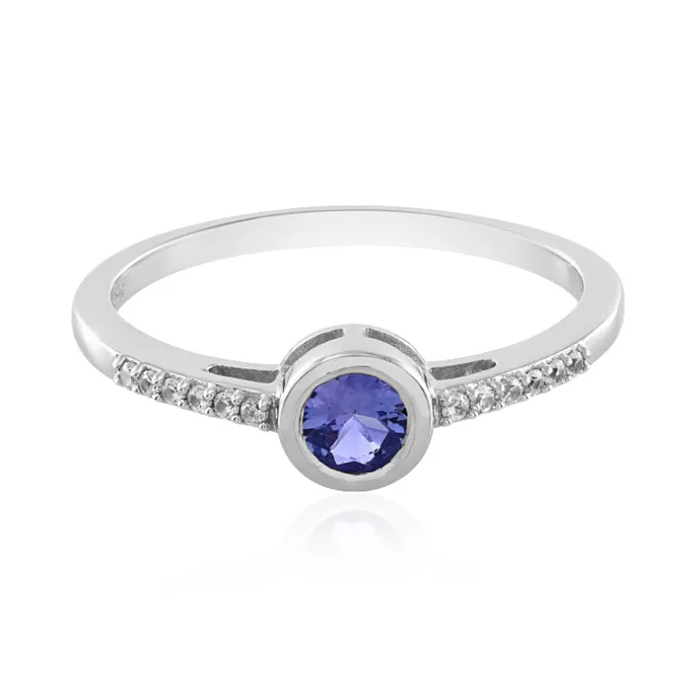 Entdecken Sie die Faszination des tansanischen Tansanits mit diesem bezaubernden Ring aus Sterlingsilber. Er ist für zusätzlichen Glanz plattiert und trägt in der Mitte einen Tansanit im Rundschliff von 0,434 Karat, der für seinen bezaubernden blauen Farbton bekannt ist, und wird durch eine Reihe funkelnder Zirkon-Akzente aus Kambodscha von insgesamt 0,143 Karat ergänzt. Das schlanke Design und die glatte Oberfläche sorgen für ein angenehmes Tragegefühl und machen diesen Ring perfekt für den Alltag oder besondere Anlässe. Kombinieren Sie dieses Schmuckstück mit einem Cocktailkleid oder einem professionellen Ensemble, um Ihrem Look einen Hauch von Raffinesse zu verleihen.