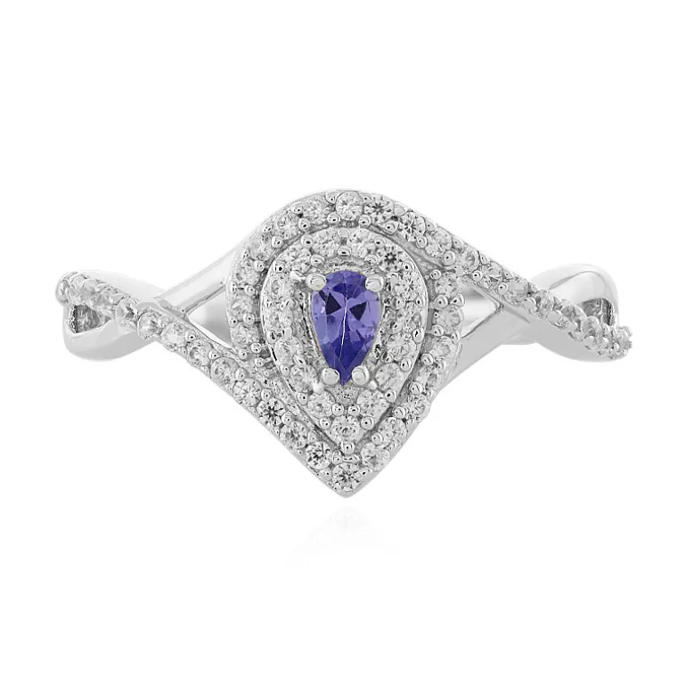 Raffinierter Tansanit 925 Silber Teardrop Ring, 0,197ct