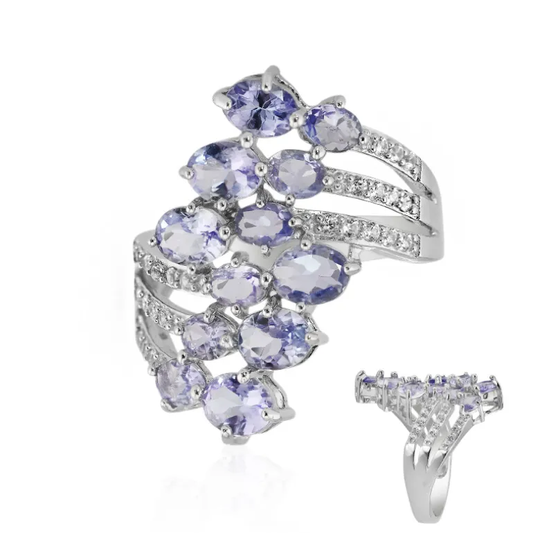 Entdecken Sie die Faszination dieses atemberaubenden Tansanit-Sterlingsilberrings, der ein faszinierendes Arrangement tansanischer Tansanite im klassischen Ovalschliff zeigt. Akzentuiert mit funkelnden Zirkonsteinen, strahlt dieses Stück Eleganz und Raffinesse aus. Perfekt für einen glamourösen Abend oder einen besonderen Anlass. Kombinieren Sie ihn mit einem eleganten Kleid für einen wirklich fesselnden Look.