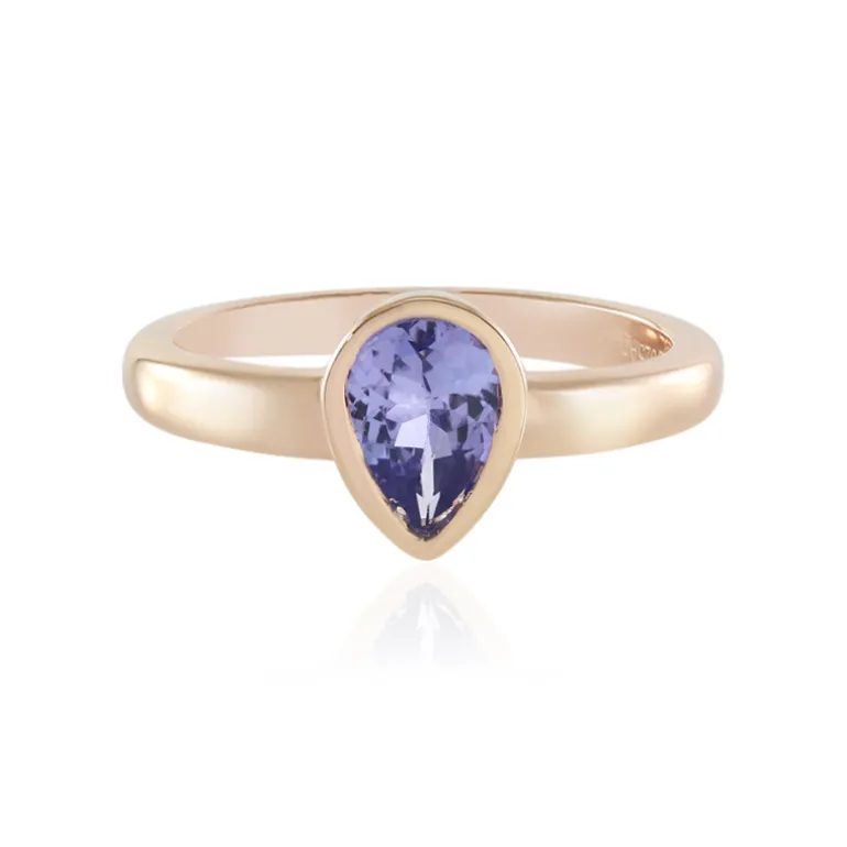 Tropfenförmiger Tansanit Ring aus rosévergoldetem Silber, 0,55ct Tansania