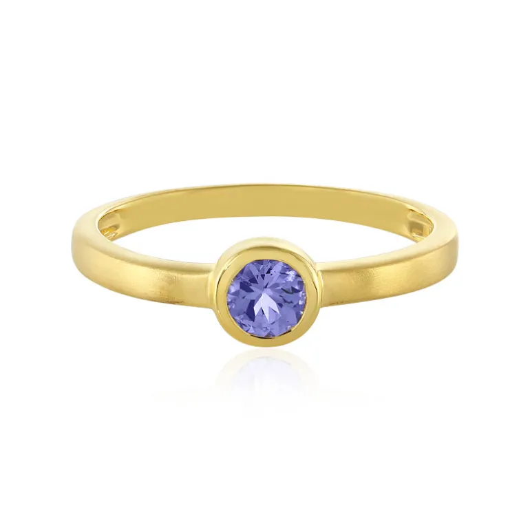 Entdecken Sie die ruhige Schönheit dieses Tansanit-Rings, der aus dem mineralreichen Tansania stammt. Das Herzstück ist ein atemberaubender 0,459 Karat großer Edelstein im Rundschliff, der in einer Fassung aus vergoldetem 925er Sterlingsilber in einem leuchtenden Lila-Ton erstrahlt. Mit seinem schlanken Banddesign ist er eine moderne Variante klassischer Eleganz. Dieser Ring ist ideal für das tägliche Tragen oder als Ergänzung zur Abendgarderobe und verleiht jedem Outfit einen Hauch von Glanz.