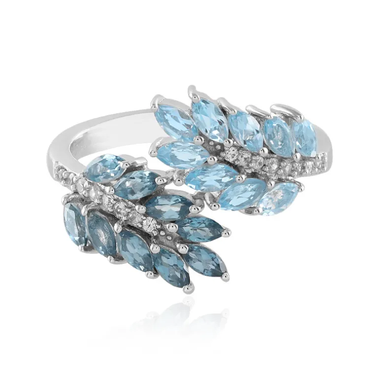 Entdecken Sie die Eleganz dieses exquisiten Silberrings mit einer atemberaubenden Kombination aus Swiss Blue und London Blue Topaz aus Brasilien. Mit funkelnden Zirkon-Akzenten aus Kambodscha bietet dieses Schmuckstück insgesamt 2,096 Karat im Marquise- und Rundschliff. Dieser Ring eignet sich perfekt für besondere Anlässe oder als raffiniertes Accessoire für den Alltag und ist ein Beweis für zeitlosen Stil.
