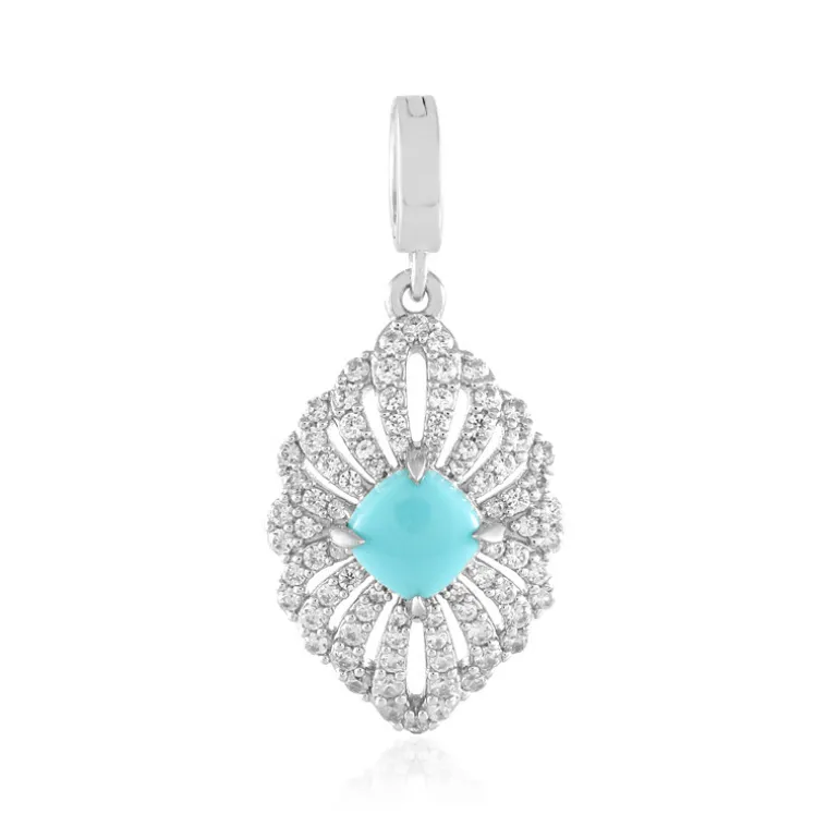 Entdecken Sie die Anziehungskraft dieses exquisiten türkisfarbenen Silberanhängers mit seinem eleganten Design, das den leuchtenden Edelstein wunderbar zur Geltung bringt. Der Varioclip bietet ein vielseitiges Styling, perfekt für den Übergang vom Tag zum Abend. Kombinieren Sie ihn mit einer legeren Bluse für einen Farbklecks oder mit einem formellen Kleid für eine Abendveranstaltung. Ein ideales Stück für alle, die Raffinesse und zeitlosen Stil zu schätzen wissen.
