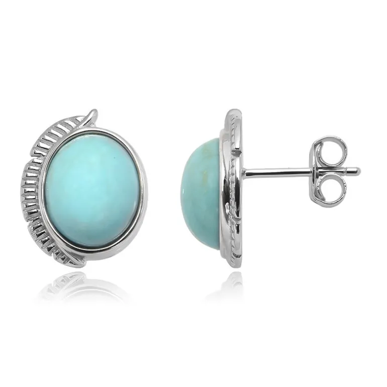 Entdecken Sie den Charme dieser Ohrringe aus Sterlingsilber mit einem ovalen Cabochon-Türkis von 6 Karat aus China. Ihr elegantes Design und ihr beruhigender blauer Farbton machen sie sowohl für legere als auch für formelle Anlässe perfekt. Kombinieren Sie sie mit einem Sommerkleid oder einer eleganten Abendgarderobe für einen Hauch von Raffinesse. Diese leichten und vielseitigen Ohrringe sind eine unverzichtbare Ergänzung für jede Schmucksammlung.