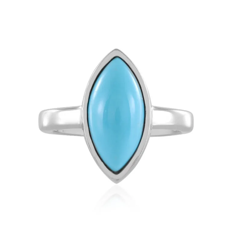 Unser auffälliger Marquise-Cabochon-Ring präsentiert einen prächtigen Türkis von 2,014 Karat aus den USA. An einem eleganten Band aus platiniertem 925er Sterlingsilber befestigt, strahlt dieses Stück subtile Eleganz aus. Seine einzigartige Form und sein verführerischer Aquafarbton machen ihn zu einem vielseitigen Accessoire für legere und formelle Anlässe. Erweitern Sie Ihre Sammlung mit diesem auffälligen Schmuckstück, das für Gesprächsstoff sorgen wird.
