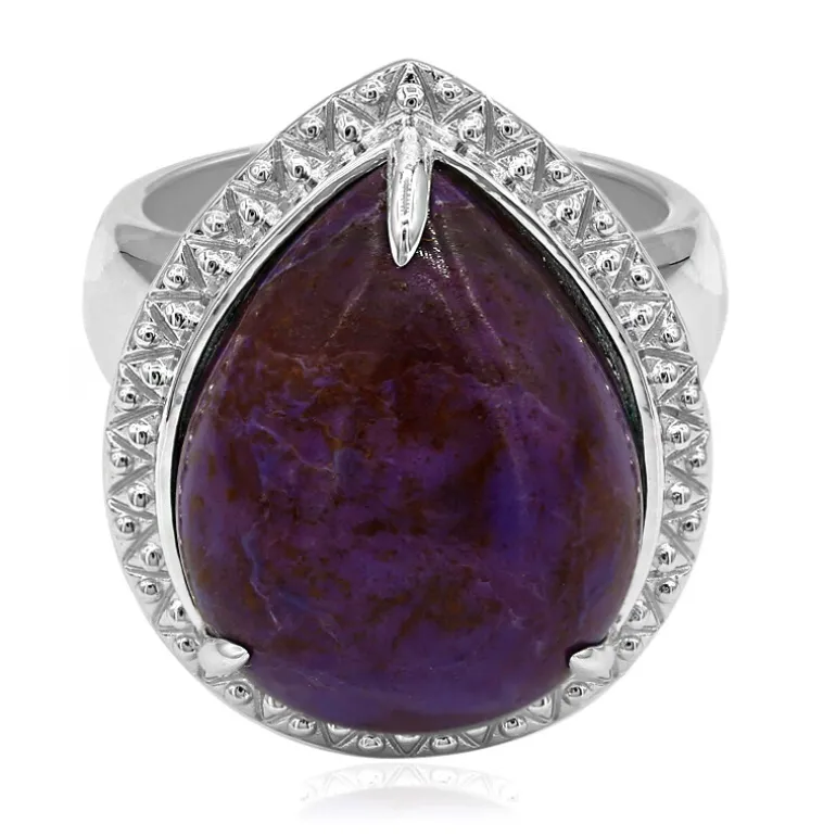 Entdecken Sie die einzigartige Anziehungskraft dieses raffinierten Rings mit einer 15,35 Karat schweren türkischen Jade, die elegant in 925er Sterlingsilber gefasst ist. Der auffallend tiefe violette Farbton des Edelsteins wird durch das glänzende, detailliert ausgearbeitete Silberband exquisit ergänzt und macht dieses Stück zu einem wahren Zeugnis zeitlosen Designs. Mit seinem tropfenförmigen Cabochon-Schliff von ca. 20×15 mm ist dieser Ring ein perfektes Statement für besondere Anlässe oder um Ihrem Alltagsoutfit einen exotischen Touch zu verleihen. Kombinieren Sie ihn sowohl mit Freizeitkleidung als auch mit formeller Kleidung, um seine natürliche Schönheit zur Geltung zu bringen.