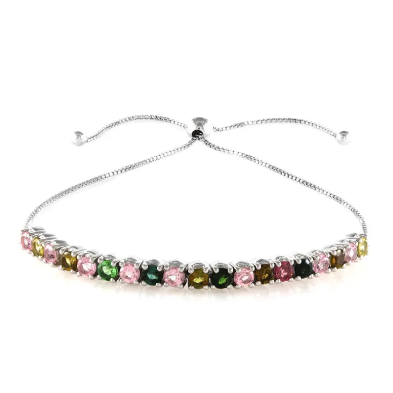 Entdecken Sie die Eleganz dieses exquisiten Armbands mit mehrfarbigen Turmalinen, das aus hochwertigem Silber gefertigt ist. Es ist von 11,5 bis 26,5 cm verstellbar und bietet Komfort und Vielseitigkeit für jede Handgelenksgröße. Die lebhaften Turmaline verleihen Ihrem Outfit einen Hauch von Farbe und eignen sich sowohl für legere als auch für formelle Anlässe. Kombinieren Sie sie mit einem eleganten Kleid oder einer schicken Bluse für einen mühelos eleganten Look.