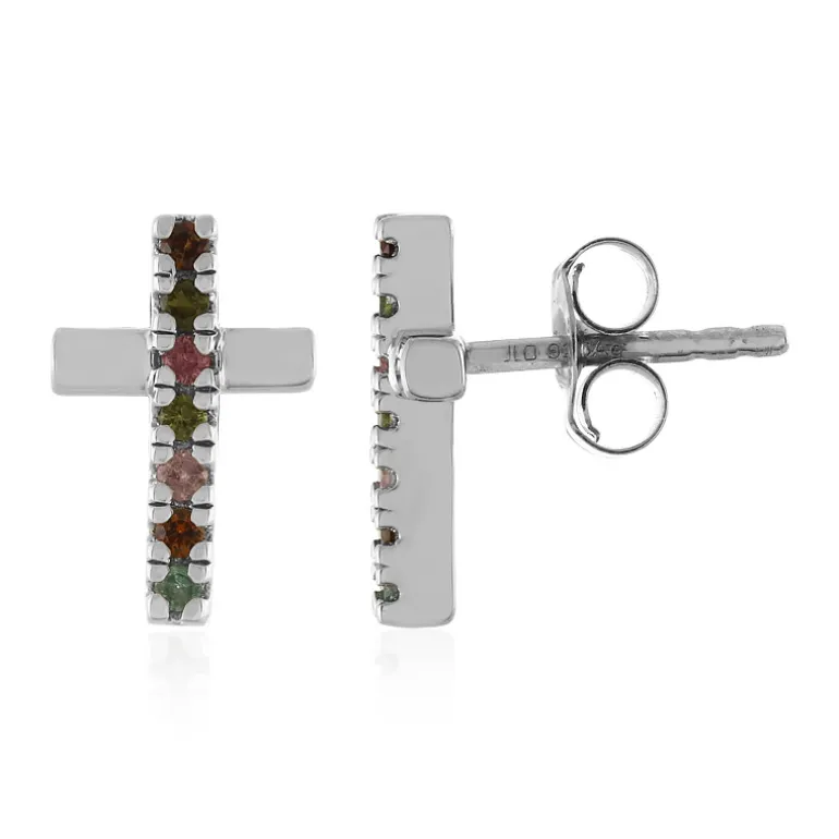 Erleben Sie die Faszination von Madagaskar mit diesen schicken Ohrsteckern, die mit einem Regenbogen von Turmalinen geschmückt sind. Jeder Stein mit einem Gewicht von 0,227 Karat ist sorgfältig rund geschliffen, um das Spiel des Lichts einzufangen, und verleiht jedem Ensemble eine unaufdringliche Eleganz. Die aus platiniertem 925er Sterlingsilber gefertigten Ohrringe mit einem Gesamtgewicht von 0,227 Karat garantieren Qualität und Charme. Sie sind ideal für den täglichen Gebrauch oder für einen subtilen Hauch von Raffinesse für besondere Anlässe und sind eine vielseitige Ergänzung für jede Schmucksammlung.