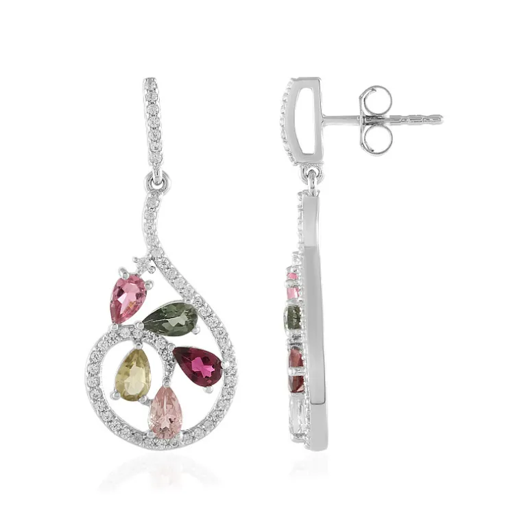 Multicolor Turmalin Silber-Ohrringe, 2,48ct