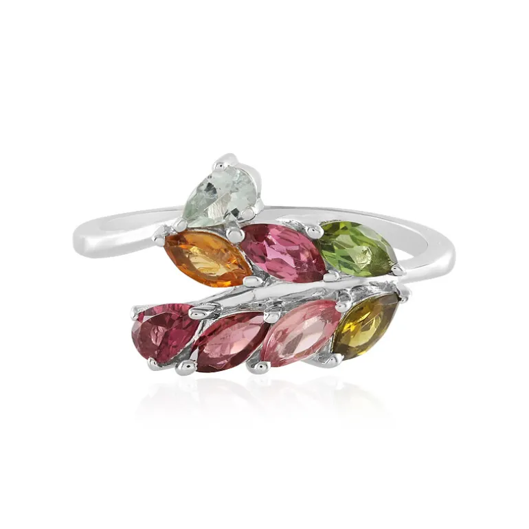 Dieser bezaubernde Ring besteht aus einer Reihe von marquise- und tropfenförmigen Turmalinen aus Madagaskar mit insgesamt 1,587 Karat. Eingefasst in platiniertes 925er Sterlingsilber, präsentiert sich jeder Edelstein in lebhaften Farben, die von warmem Bernstein über erfrischendes Grün bis hin zu leidenschaftlichem Rosa reichen und an einen lebendigen Blumenstrauß erinnern. Das schlanke Design sorgt für einen bequemen Sitz und ist gleichzeitig ein echter Blickfang. Es ist ein vielseitiges Schmuckstück, das sowohl Neulingen als auch erfahrenen Edelsteinsammlern gefallen wird und ideal ist, um sowohl lässigen als auch formellen Outfits einen Farbtupfer zu verleihen.