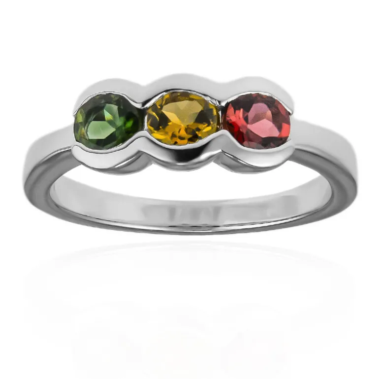 Entdecken Sie den lebendigen Charme dieses bezaubernden Rings mit einem Trio von Mosambik-Turmalinen im Rundschliff in einer Symphonie von Farben, anmutig gefasst in platiniertem 925er Sterlingsilber. Das glänzende Band mit einem Gewicht von ca. 2,67 g unterstreicht die natürliche Schönheit der 0,737 ct schweren Edelsteine mit seinem schlanken Design. Dieses Schmuckstück ist ein wahrer Beweis für exquisite Handwerkskunst und Eleganz und eignet sich sowohl für den Alltag als auch für besondere Anlässe. Kombinieren Sie ihn mit pastellfarbenen oder neutralen Outfits, damit die Farben richtig zur Geltung kommen.