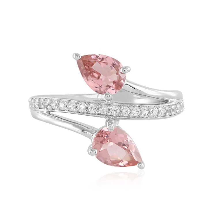 Dieser bezaubernde Ring besteht aus 1,23 Karat brasilianischen rosa Turmalinen im Birnenschliff, die in einem zarten, offenen Band gefasst sind. Ergänzt durch funkelnde Zirkonsteine im Rundschliff aus Kambodscha bietet er einen Hauch von Raffinesse mit seinem platinierten 925er Sterlingsilberband, das ca. 2,53 g wiegt. Ideal, um jedem Ensemble einen Hauch von Glamour zu verleihen, ob beim Brunch mit Freunden oder beim Ausgehen in der Stadt.