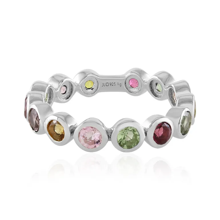 Dieser elegante Ring mit 14 Turmalinen im Rundschliff aus Mosambik ist ein wahrer Farbklecks. Die in platiniertem 925er Sterlingsilber gefassten Edelsteine haben ein Gesamtkaratgewicht von 1,698 und bieten ein faszinierendes Farbenspiel. Dieser Ring eignet sich perfekt, um jedem Outfit einen lebendigen Touch zu verleihen, und ist der ideale Begleiter sowohl für zwanglose Treffen als auch für elegante Anlässe.