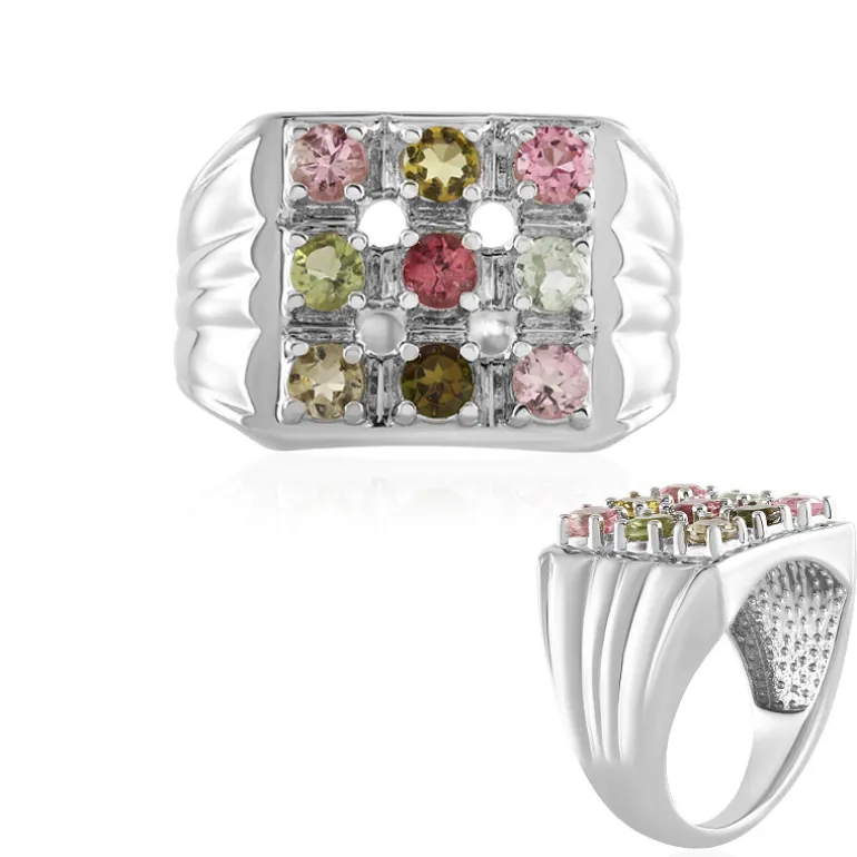 Lassen Sie sich von der bezaubernden Farbpalette dieses wunderschön gestalteten Rings verzaubern, der eine Kollektion von neun Madagaskar-Turmalinen im Rundschliff mit insgesamt 1,078 Karat präsentiert. Eingefasst in edles 925er Sterlingsilber mit moderner Platinbeschichtung glänzt dieser Ring mit einem Gewicht von ca. 6,09 Gramm. Die leuchtenden Farben der Edelsteine machen ihn vielseitig genug, um den Alltag zu verschönern oder der Abendgarderobe den letzten Schliff zu geben. Ein unverzichtbares Stück für alle, die die subtile Eleganz feiner Edelsteine zu schätzen wissen.