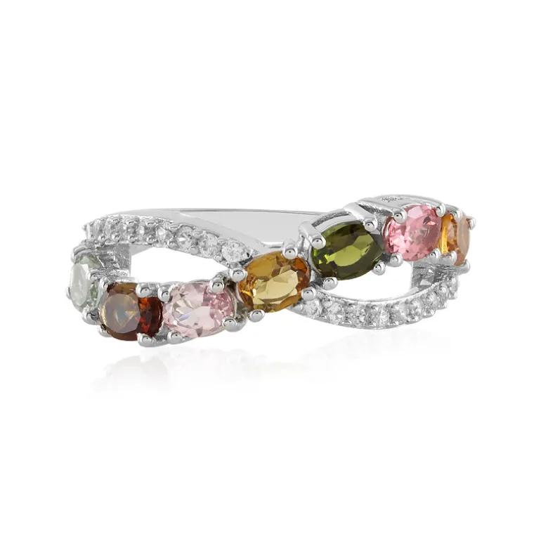 Dieser strahlende Multicolor-Turmalinring ist ein bezauberndes Schmuckstück mit einer Reihe von brasilianischen Edelsteinen im Ovalschliff von insgesamt 1,015 Karat, die kunstvoll in einer modernen Fassung aus 925er Sterlingsilber mit Platinbeschichtung angeordnet sind. Umgeben von funkelnden Zirkon-Akzenten aus Kambodscha, umfasst die vielfältige Farbpalette des Rings warme und kühle Töne, die ihn für verschiedene Anlässe geeignet machen. Ob als alltägliches Accessoire oder als Blickfang für besondere Anlässe, dieser Ring wird Sie begeistern und Ihrem Ensemble einen fröhlichen Farbtupfer verleihen.