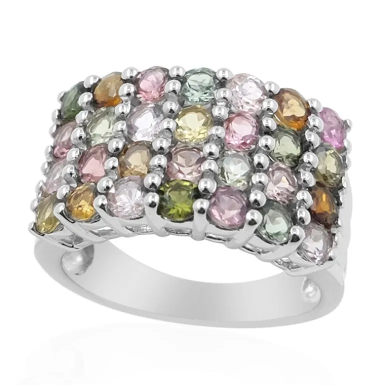 Dieser bezaubernde Multicolor-Turmalinring aus Mosambik lässt ein ganzes Spektrum an Farben erstrahlen. Die 2,848 Karat Turmaline im Rundschliff sind in hochwertigem 925er Sterling Silber gefasst und bilden ein schillerndes Schauspiel aus Pastelltönen. Die handwerkliche Verarbeitung sorgt für einen bequemen und sicheren Sitz und macht ihn zu einer reizvollen Ergänzung für jede Schmucksammlung. Dieser Ring ist ideal, um einen lässigen Tagesausflug zu verschönern oder der Abendgarderobe einen farbigen Akzent zu verleihen – er ist vielseitig und stilvoll.