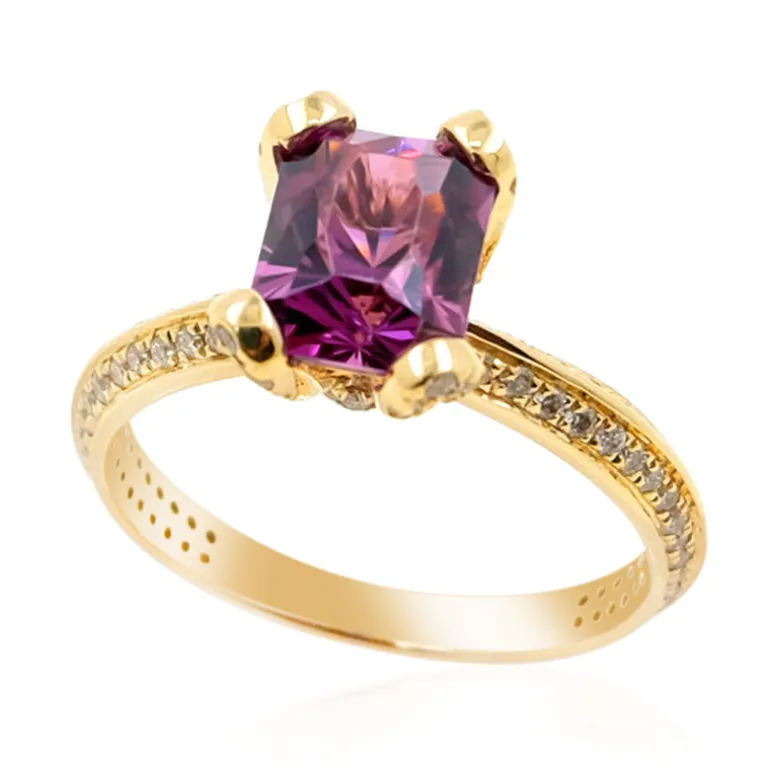 Entdecken Sie die Faszination dieses bezaubernden Umbalit-Rings aus Tansania, der einen 2,034 Karat schweren Edelstein im Achteck-Schliff mit einem satten, fesselnden Farbton in luxuriösem 9-karätigem Gelbgold fasst. Das schimmernde Band ist mit einer Kaskade von 174 funkelnden Diamanten von insgesamt 0,529 Karat verziert, die die Brillanz des zentralen Steins noch verstärken. Dieser Ring ist perfekt für besondere Anlässe oder als eleganter Begleiter im Alltag. Seine zeitlose Eleganz und der einzigartige, seltene Umbalit machen ihn zu einer wertvollen Ergänzung für jede Schmucksammlung.
