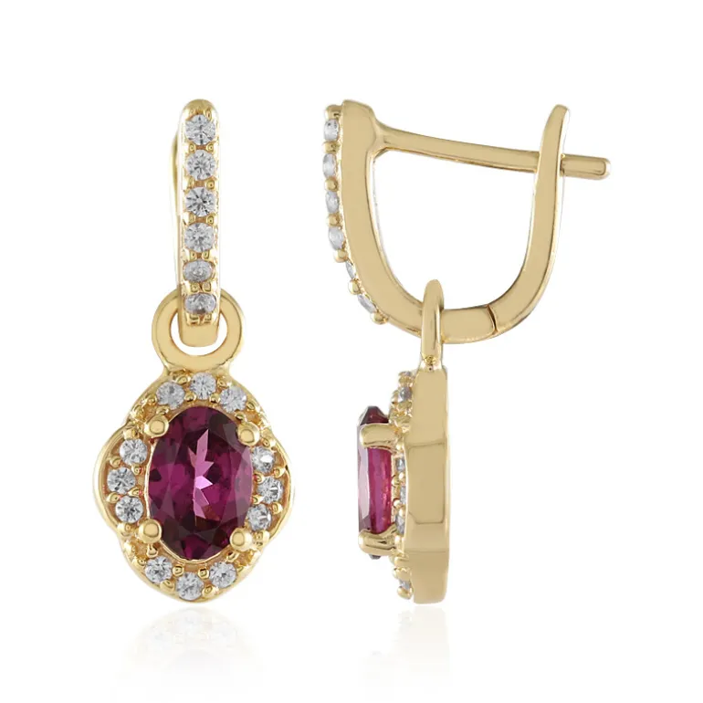 Entdecken Sie die Eleganz dieser Umbalit-Ohrringe, deren ovale Edelsteine aus Tansania von Zirkonen aus Kambodscha umgeben sind. Das 925er Sterlingsilber ist fachmännisch vergoldet und verleiht jedem Outfit einen luxuriösen Touch. Perfekt für formelle Anlässe oder einen raffinierten Abendlook, sind diese Ohrringe ein auffälliges Accessoire, das Ihren Stil mit seinen leuchtenden Farben und seinem zeitlosen Design unterstreicht.
