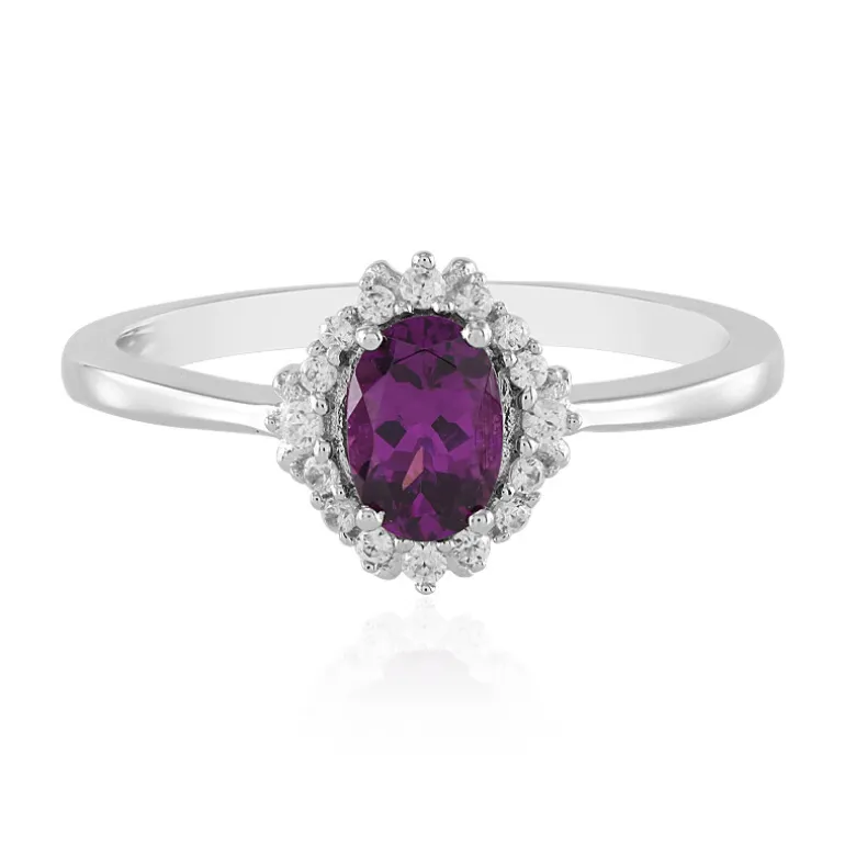 Entdecken Sie die Faszination dieses atemberaubenden Silberrings, der mit einem 0,647 Karat schweren Umbalit aus Tansania besetzt ist, der einen satten violetten Farbton aufweist. Der ovale Edelstein im Brillantschliff wird elegant von glitzernden Zirkonen aus Kambodscha mit insgesamt 0,173 Karat eingerahmt, die seine Brillanz noch verstärken. Gekonnt gefasst in platiniertem 925er Sterlingsilber für zusätzliche Haltbarkeit und Glanz, ist dieser Ring ein Zeugnis für raffinierten Geschmack und Raffinesse. Er passt sowohl zu legeren als auch zu formellen Anlässen und ergänzt jedes Outfit. Damit ist er die ideale Wahl für Ihre Schmucksammlung oder als geschätztes Geschenk.