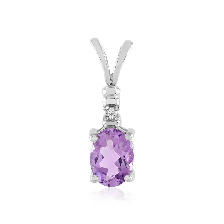 Entdecken Sie die fesselnde Anziehungskraft dieses raffinierten uruguayischen Amethyst-Anhängers. Der Anhänger aus platiniertem 925er Sterlingsilber ist mit einem 0,976 Karat schweren Amethysten im Ovalschliff besetzt, der einen leuchtenden violetten Farbton aufweist und von funkelnden kambodschanischen Zirkon-Akzenten ergänzt wird. Dieser Anhänger eignet sich perfekt, um sowohl am Tag als auch am Abend einen Hauch von Eleganz zu verleihen und ist eine zeitlose Ergänzung für jede Schmucksammlung. Die Herkunft des Edelsteins und sein präziser Schliff sorgen für Exklusivität, während das zarte Design ihn zu einem idealen Geschenk oder einer persönlichen Aufmerksamkeit macht.