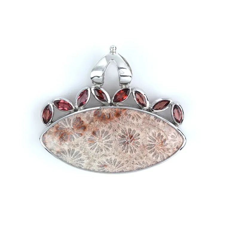 Indonesische Fossil Koralle & Granat Sterling Anhänger, 43,2 ct