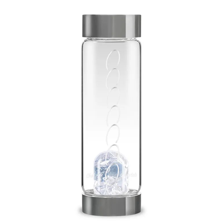 Entdecken Sie mit dieser einzigartigen Chakra-Wasserflasche mit mehreren Edelsteinen eine Flüssigkeitszufuhr mit Wohlbefinden. Eine harmonische 300-karätige Mischung aus Angelit, Chalcedon und weißem Quarz, die in verschiedenen Größen mit einem ausgefallenen Schliff geformt wurden, wirken zusammen, um ein Elixier zu schaffen, das Ruhe und Reinheit fördern soll. Dieses Gefäß ist ideal für alle, die die Synergie zwischen natürlichen Elementen und dem täglichen Leben zu schätzen wissen, und bereichert die Erfahrung der Wasseraufnahme. Es ist ein Gesprächsgegenstand und eignet sich auch als durchdachtes Geschenk, da es sowohl Stil als auch Gelassenheit in Ihren Alltag bringt.