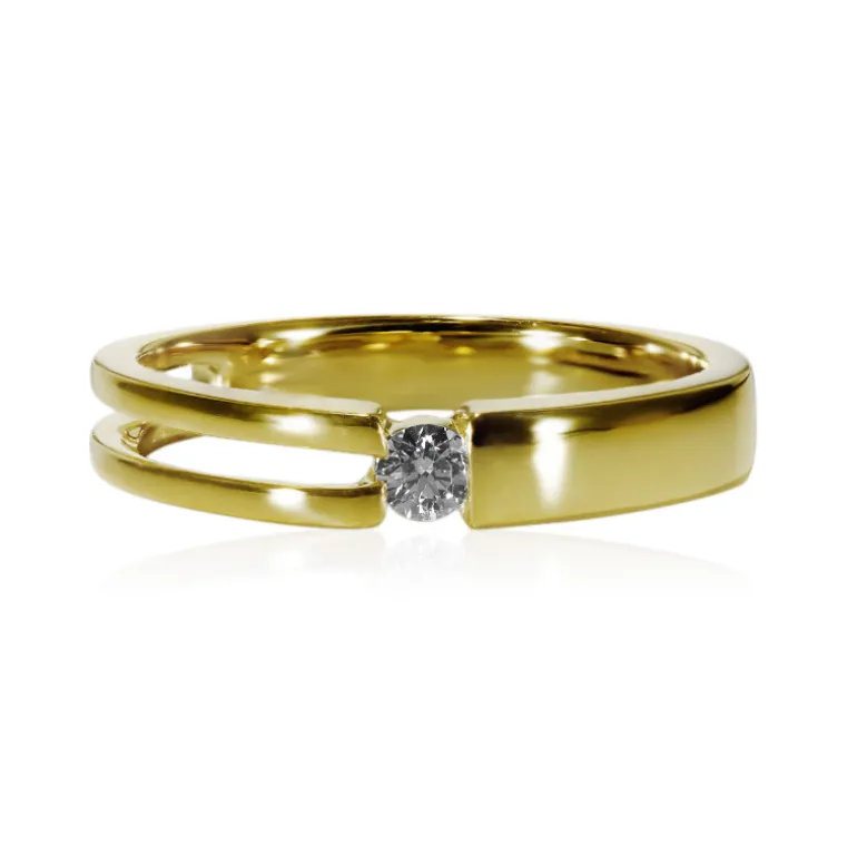 Entdecken Sie die schlichte Eleganz dieses Rings aus 18 Karat Gelbgold mit einem erstklassigen Diamanten der Reinheitsklasse VS1, der den Inbegriff von Raffinesse verkörpert. Der runde Brillant von 0,09 Karat ist sorgfältig in ein schlankes Design gefasst, das ihn zu einer zeitlosen Ergänzung für jede Kollektion macht. Dieser Ring, der sich sowohl für lässige Eleganz als auch für besondere Anlässe eignet, ist ein Beweis für exquisite Handwerkskunst und raffinierten Geschmack.