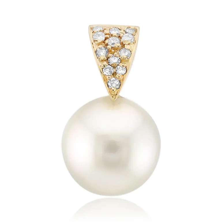 Dieser exquisite Anhänger besteht aus einer glänzenden weißen Südseeperle aus dem Südpazifik, die elegant mit funkelnden Diamanten in 18 Karat Gelbgold gefasst ist. Die klassische runde Perle misst etwa 10 mm, während die Diamanten einen Hauch von Brillanz verleihen. Die Perle ist ideal für anspruchsvolle Anlässe oder als elegantes Accessoire für jeden Tag. Sie passt sowohl zu formellen Kleidern als auch zu schicker Freizeitkleidung.