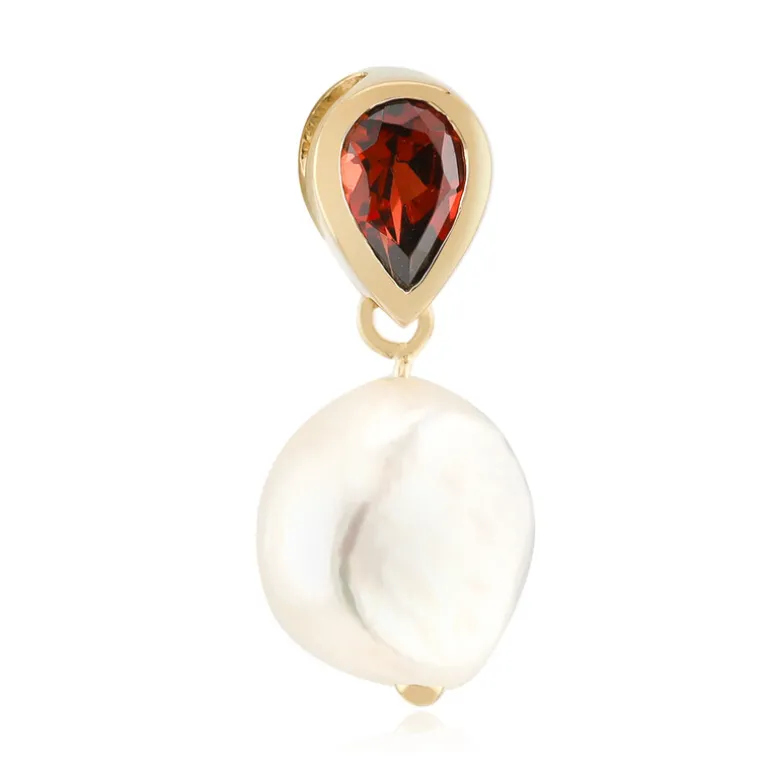 Entdecken Sie die Eleganz dieses atemberaubenden Anhängers mit einer weißen Süßwasserperle aus China, gepaart mit einem tropfenförmigen Mosambik-Granat aus Brasilien. Der Anhänger aus vergoldetem 925er Sterlingsilber verleiht jedem Outfit einen Hauch von Eleganz. Perfekt für die Abendgarderobe oder besondere Anlässe, ein Muss für alle, die einzigartigen, handgefertigten Schmuck zu schätzen wissen.