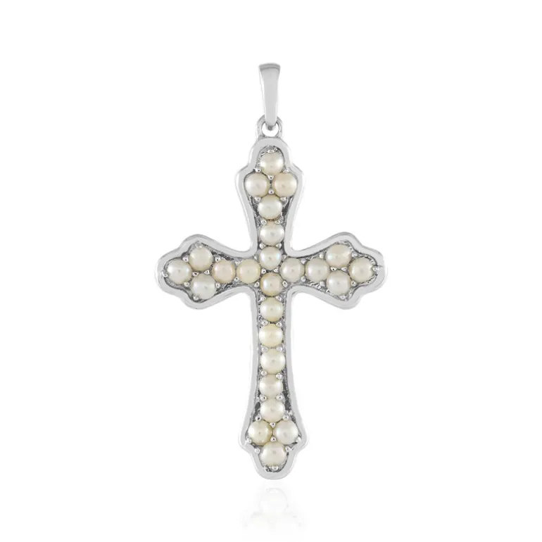 Dieser elegante Anhänger besteht aus 25 weißen Süßwasserperlen aus China, die jeweils etwa 2,5 mm groß sind. Das 44×25 mm große Kreuz ist in 925er Sterlingsilber gefasst und verleiht jedem Outfit einen zeitlosen Touch. Ideal für legere und formelle Anlässe. Kombinieren Sie ihn mit Ihrem Lieblingsensemble für einen raffinierten Look.