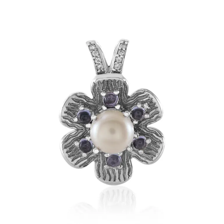 Entdecken Sie die Eleganz dieses exquisiten Anhängers aus Sterlingsilber mit einer glänzenden chinesischen Süßwasserperle in der Mitte. Umgeben von tansanischen Tansaniten und kambodschanischen Zirkonen strahlt dieses Stück Anmut und Raffinesse aus. Er ist sowohl für den Tag als auch für den Abend geeignet und passt sowohl zu formeller Kleidung als auch zu einer lässigen Bluse.