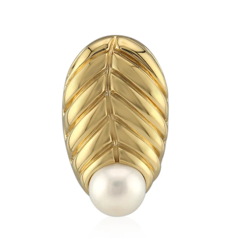 Entdecken Sie einen Hauch von Eleganz mit diesem vergoldeten Anhänger aus Sterlingsilber, der von einer glänzenden 7 mm großen, runden weißen Süßwasserperle aus den ruhigen Gewässern Chinas geschmückt wird. Der Anhänger zeigt ein einzigartiges, von Blättern inspiriertes Design, das Ihrem Stil einen Hauch von Natur verleiht. Dieses Schmuckstück ist ideal, um Ihrem Alltag Raffinesse zu verleihen oder bei besonderen Anlässen einen Akzent zu setzen. Es kann eine schicke Bluse oder ein formelles Outfit mit Anmut ergänzen.