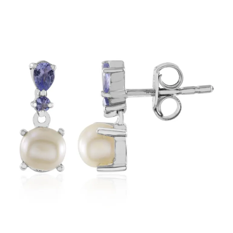 Entdecken Sie Eleganz mit diesen atemberaubenden Tansanit-Perlen-Ohrringen aus Silber. Diese Ohrringe aus 925er Sterlingsilber sind mit exquisiten weißen Süßwasserperlen und lebhaften tansanischen Tansanit-Edelsteinen besetzt. Sie eignen sich sowohl für formelle Anlässe als auch für den eleganten Alltag und verleihen jedem Outfit einen Hauch von Luxus. Ideal zur Abendgarderobe oder als Ergänzung zu einer eleganten Bluse.