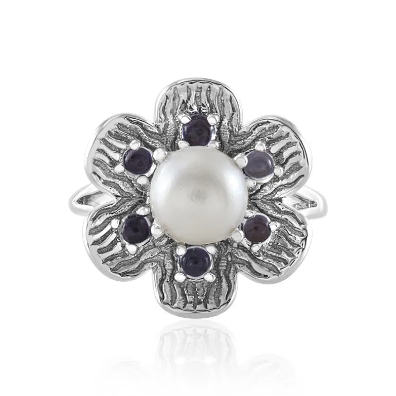 Perle-Tansanit-Sterlingsilber-Ring mit Blumenmuster