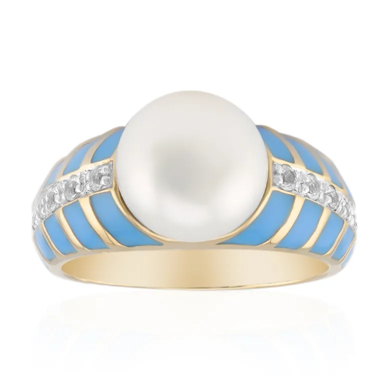 Entdecken Sie die Eleganz dieses schicken Perlenrings mit einer glänzenden 9 mm großen weißen Süßwasser-Zuchtperle aus China. Akzentuiert mit funkelnden weißen Topas-Edelsteinen aus Brasilien, zeigt der Ring eine delikate Balance aus Schimmer und Schönheit. Er ist aus vergoldetem 925er Sterlingsilber gefertigt und verleiht jedem Outfit einen Hauch von Raffinesse – perfekt für besondere Anlässe oder zur Aufwertung im Alltag.