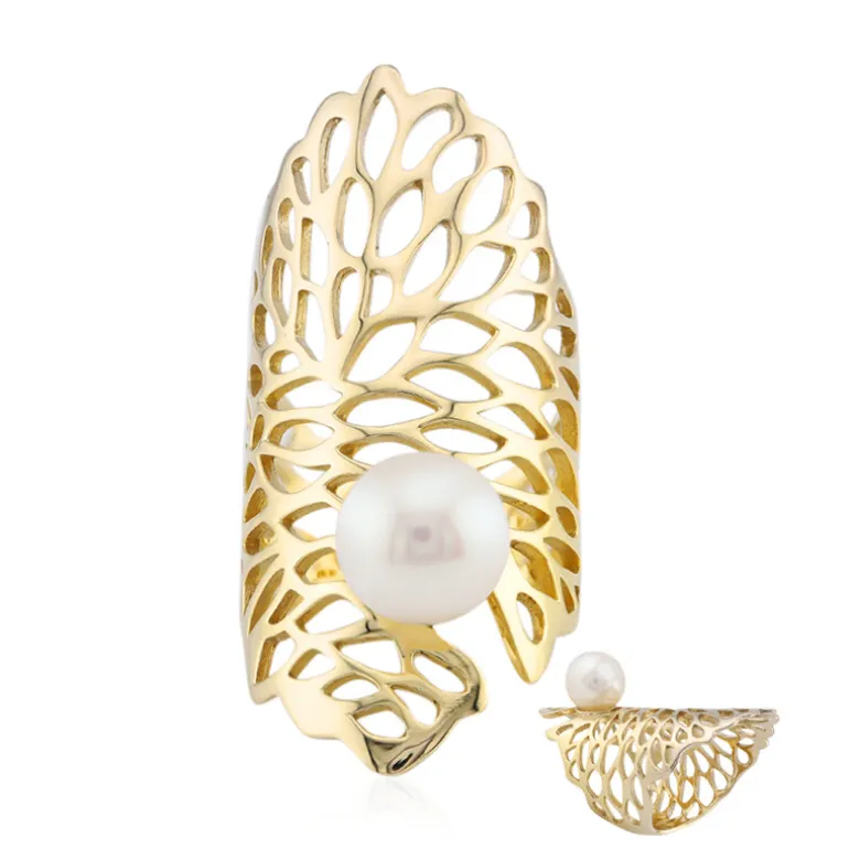 Unterstreichen Sie Ihre Eleganz mit diesem exquisiten Ring mit einer weißen Süßwasser-Zuchtperle aus China, die anmutig in einer vergoldeten Sterlingsilberfassung sitzt. Das filigrane durchbrochene Design verleiht einen Hauch von Luxus. Dieser Ring ist ideal für den Abend oder besondere Anlässe und passt sowohl zu formellen Kleidern als auch zu schicker Freizeitkleidung. Er ist eine vielseitige Ergänzung Ihrer Schmucksammlung.
