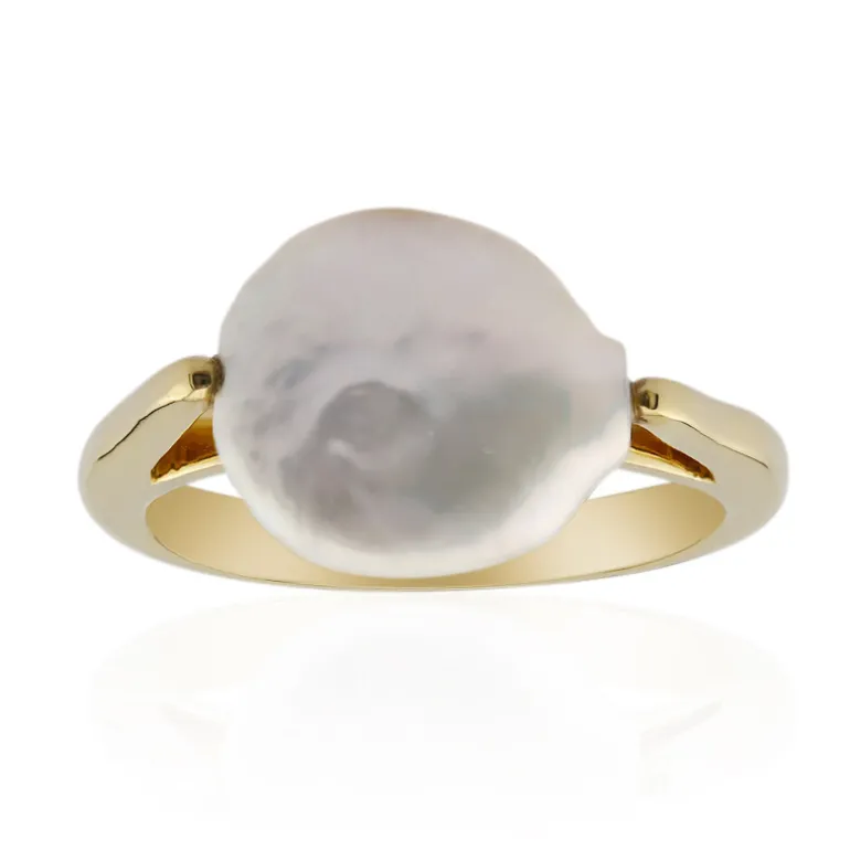 Dieser schicke Silberring mit einer glänzenden weißen Süßwasserperle verleiht zeitloser Eleganz eine moderne Note. Die einzigartige Silhouette der schimmernden Perle balanciert anmutig auf einem glatten, vergoldeten Silberband und präsentiert eine harmonische Mischung aus klassischer Schönheit und zeitgenössischem Design. Dieser Ring ist eine vielseitige Ergänzung für jede Schmucksammlung und eignet sich perfekt, um einen formellen Look zu unterstreichen oder Ihrem Alltagsstil Raffinesse zu verleihen. Sein fesselnder Charme macht ihn zu einem idealen Geschenk für alle, die den subtilen Reiz von Perlen zu schätzen wissen.
